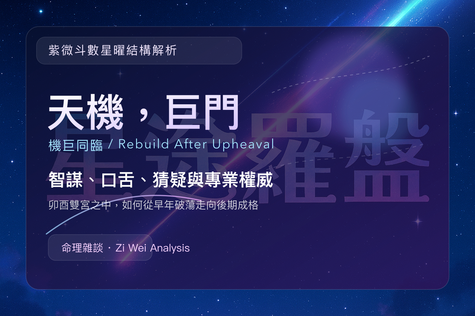 In Zi Wei Dou Shu, the pairing of Tian Ji and Ju Men in the Mao and You palaces is one of the most discussed double-star structures. It combines two powerful currents at once: